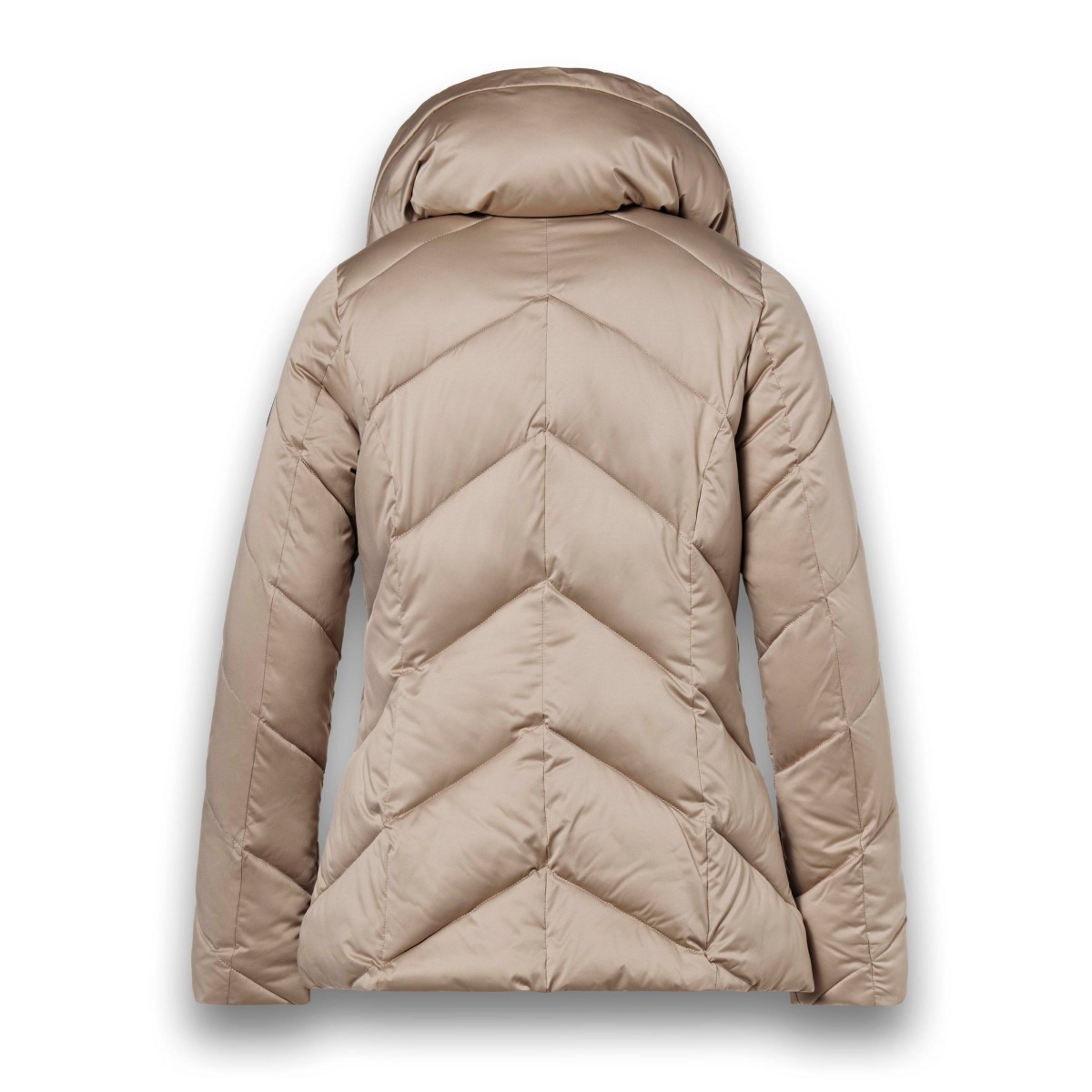 • średniej długości, pikowana kurtka o lekkim połysku i wodoodpornym materiale.