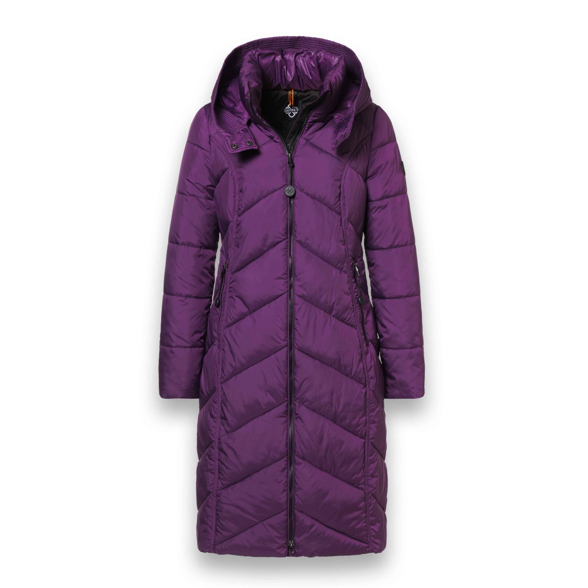 • płaszcz pikowany District Arosa z materiału z recyklingu, wodoodporny, z odpinanym, dużym, pikowanym regulowanym kapturem