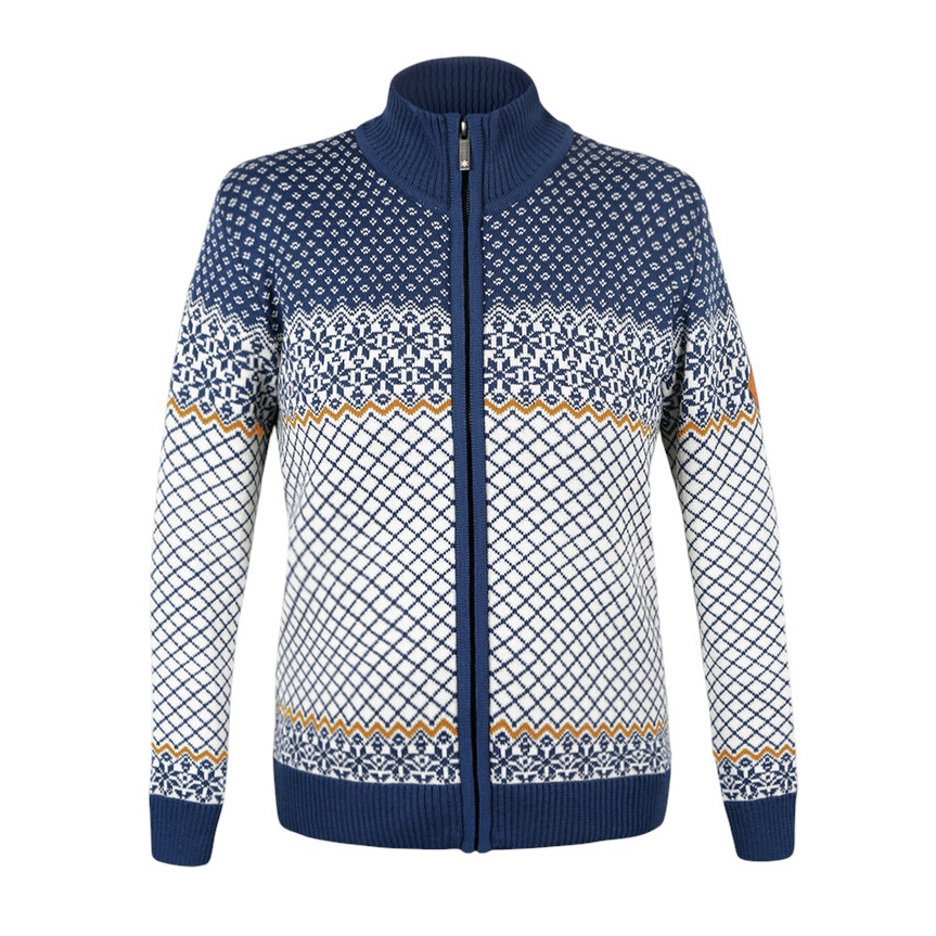 Kama Sweter Pullover 5060 Full Zip (wełna merino, wiatroszczelny, oddychający) niebiesko/biały damski