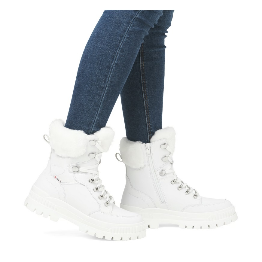 Rieker zimowe botki W2174-80 (sznurowane botki z podszewką, skóra gładka) białe damskie
