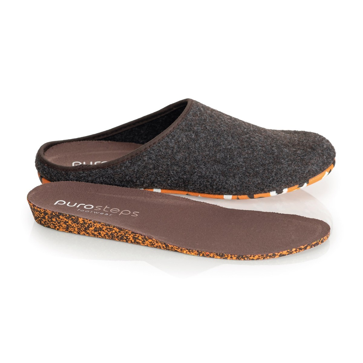 Purosteps kapcie filcowe Eco Signet (wełniany filc) brązowo/pomarańczowe
