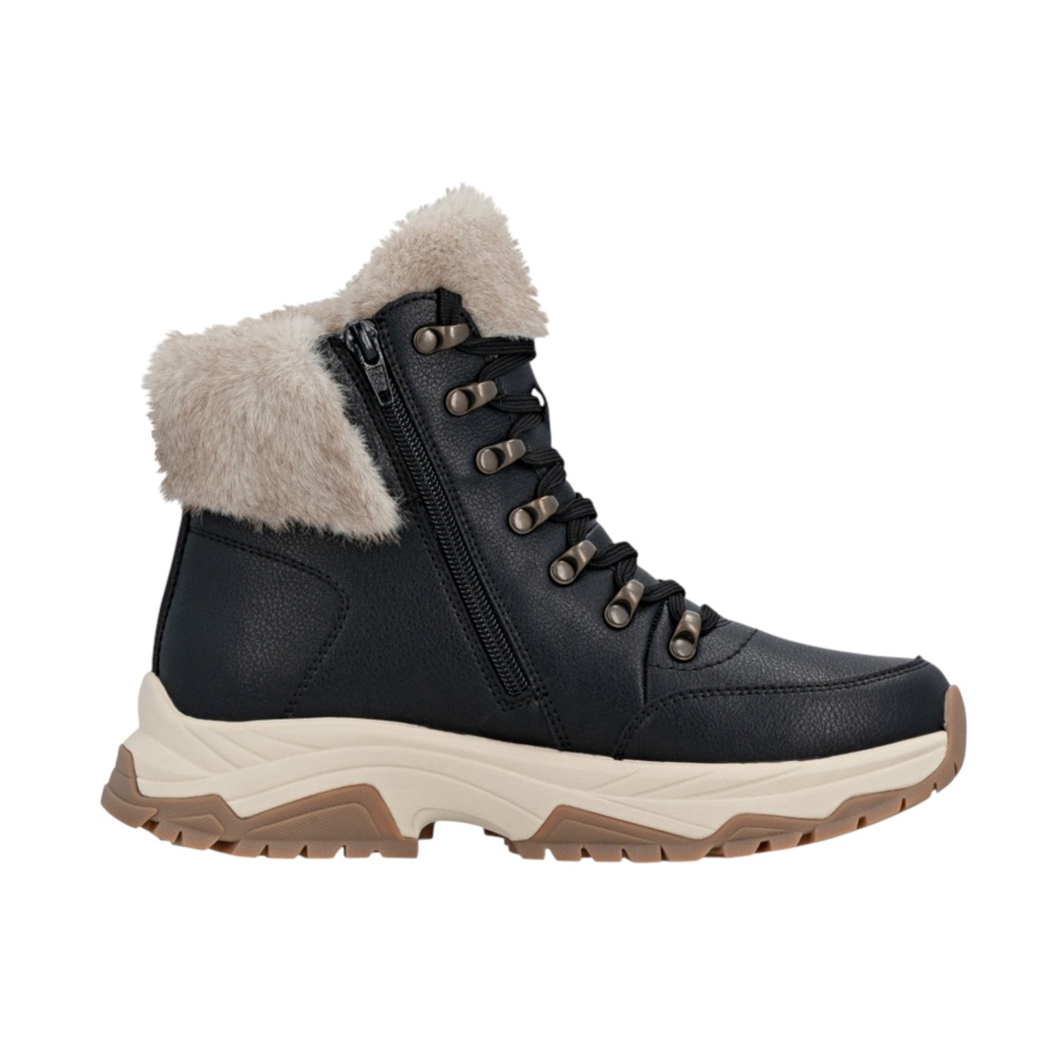 Botki zimowe Rieker W3971-20 (botki z bocznym zamkiem błyskawicznym i podszewką) beżowe damskie