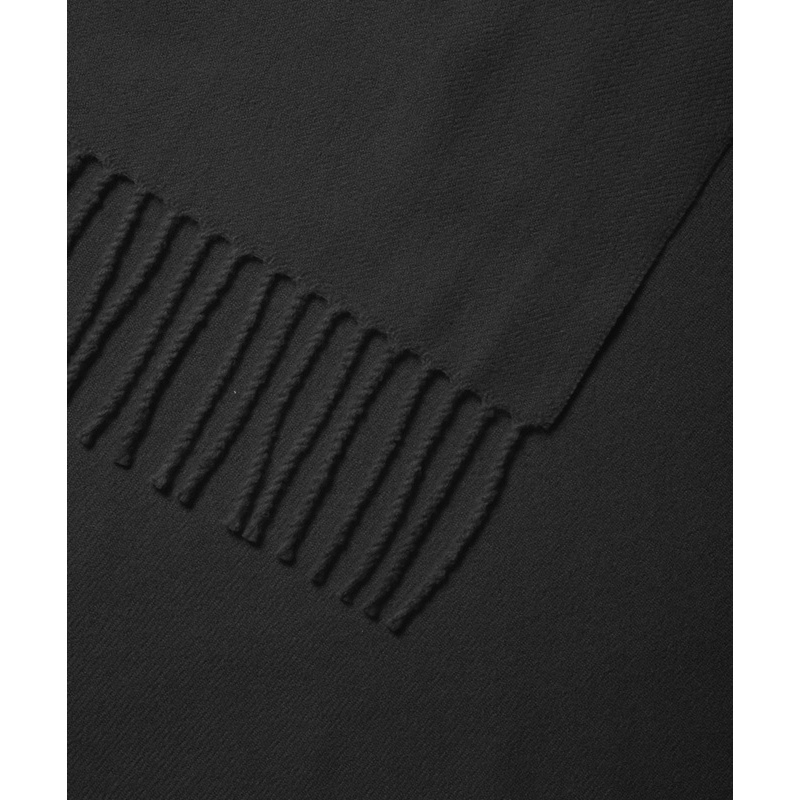 • jednokolorowy, tkany szal z czystej wełny merino z frędzlami