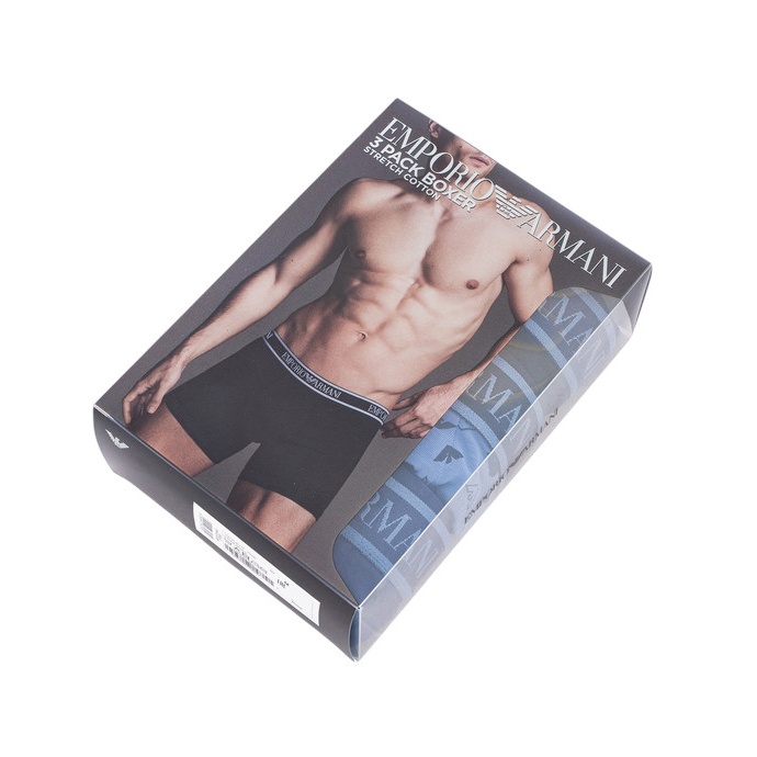 Alarm cenowy dla Emporio Armani bielizna męska bokserki z bawełny stretch niebieskie/ciemnoniebieskie w wzory - 3 sztuki