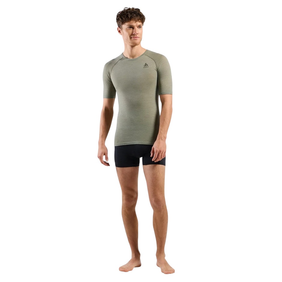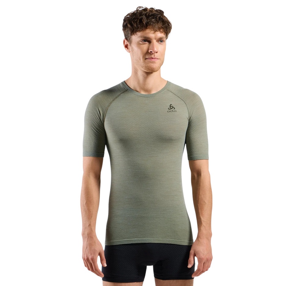 Odlo Funkcjonalna bielizna termoaktywna Koszulka Performance Wool 140 (Mieszanka Merino, bezszwowa, szybkoschnąca) zielona Mężczyźni