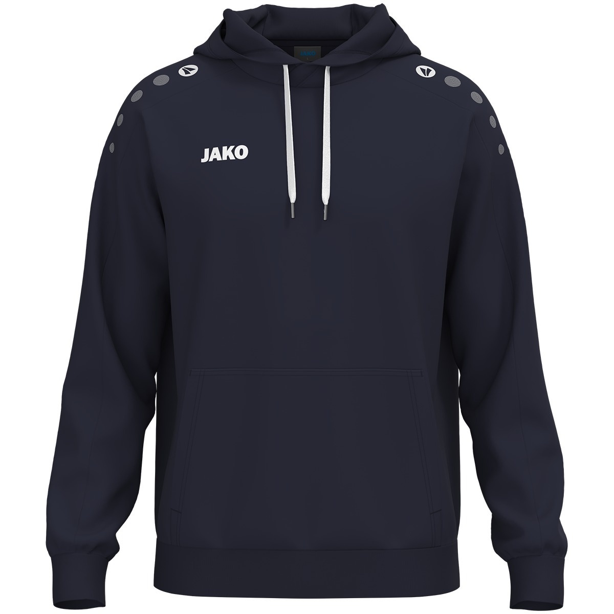 • JAKO Dots na ramieniu i logo JAKO na prawej piersi nadają hoodie sportowo-nowoczesny wygląd.