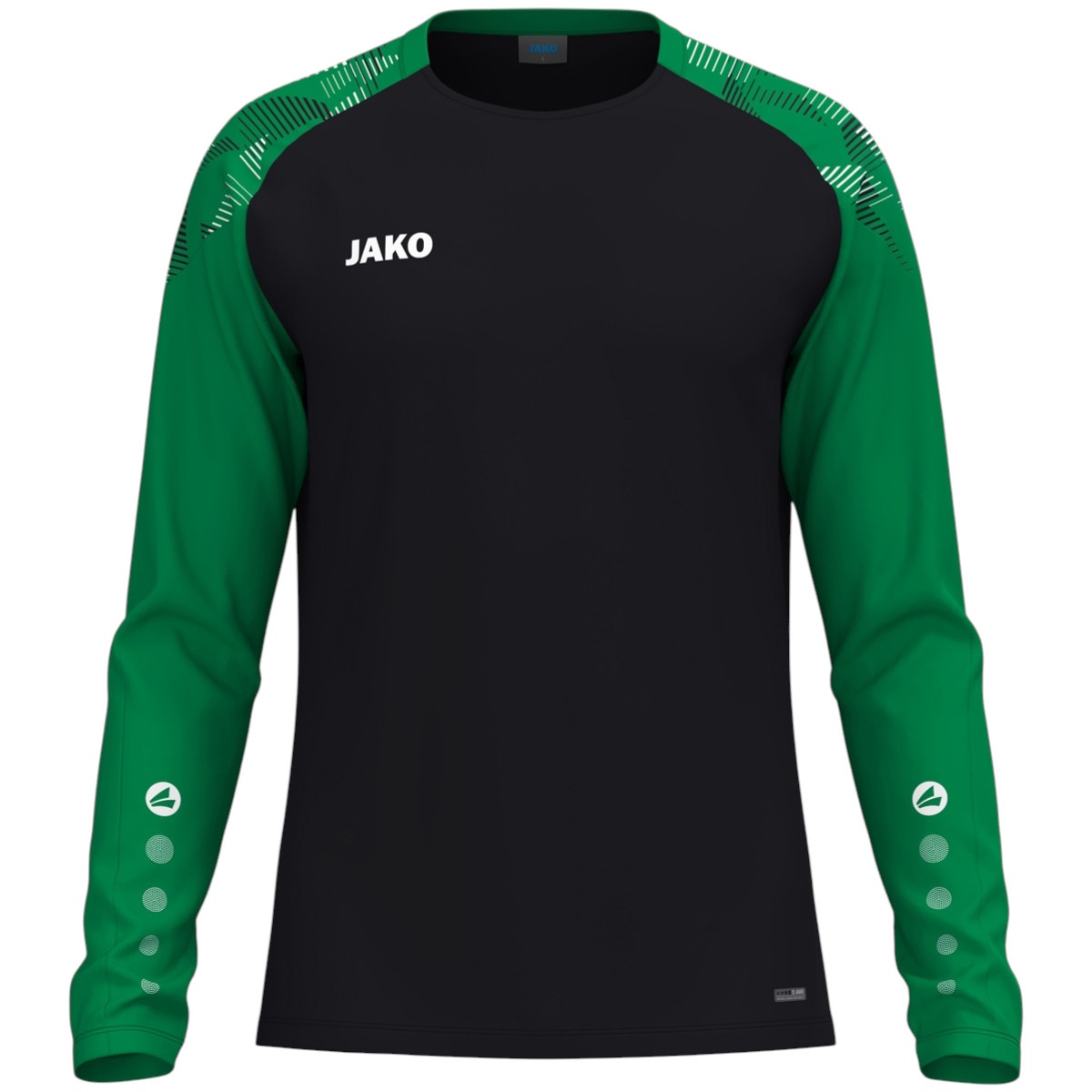 • Wstawka na ramieniu w designie nadruku nadaje swetrowi dynamiczny wygląd, podczas gdy kropki JAKO na rękawie zapewniają niepowtarzalny styl marki.