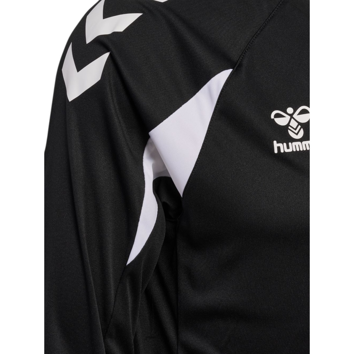 • posiada klasyczny okrągły dekolt, kontrastowe wstawki na ramionach oraz chevrony hummel na rękawach, które nadają niepowtarzalny i sportowy wygląd drużynowy.