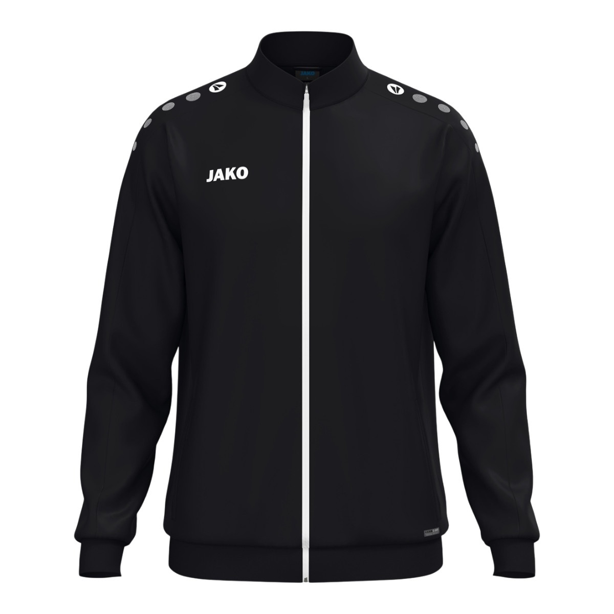 • JAKO Dots na ramieniu, logo JAKO na prawej piersi oraz zakończenia kurtki i rękawów z ribbingu zapewniają nowoczesny wygląd.