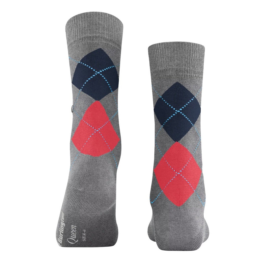 Skarpetki dzienne Burlington Queen (wzór Argyle) szare/czerwone damskie - 1 para