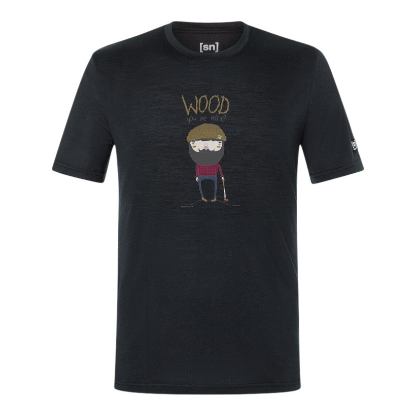 super natural T-shirt Freizeit Wood Crafti (Merino-Mix) czarny męski