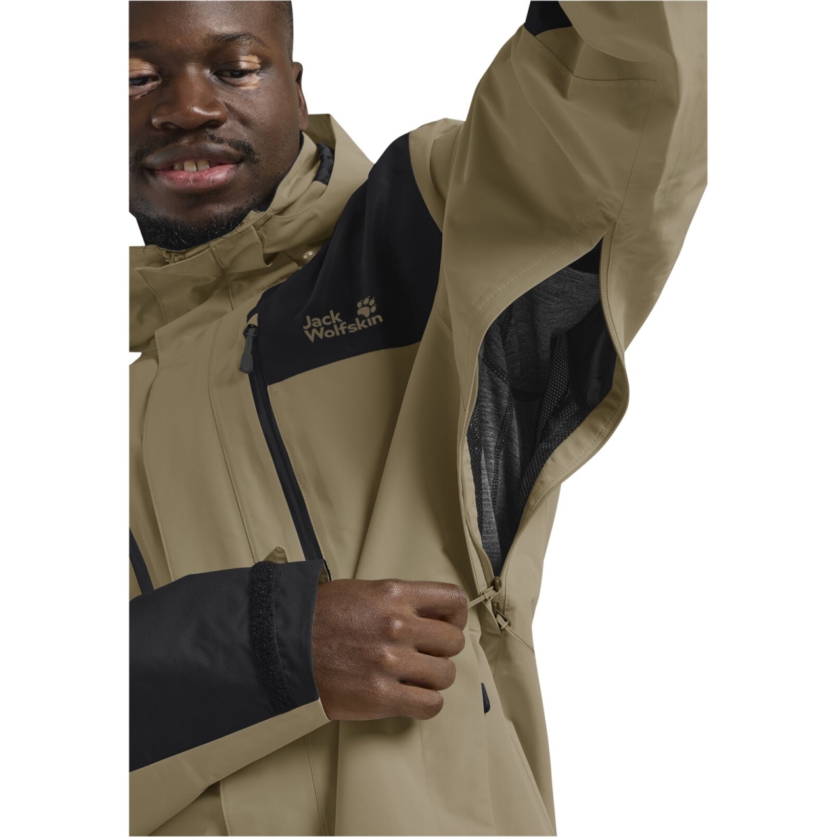 Kurtka turystyczna/przeciwdeszczowa Jack Wolfskin Jasper 2-warstwowa (kurtka ochronna, wodoodporna, wiatroszczelna) beżowo-czarna męska