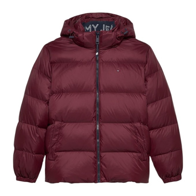Tommy Jeans Zimowa Kurtka Puchowa Essential Down Jacket EXT z Kapturem (ciepła, wodoodporna) bordowa Męska