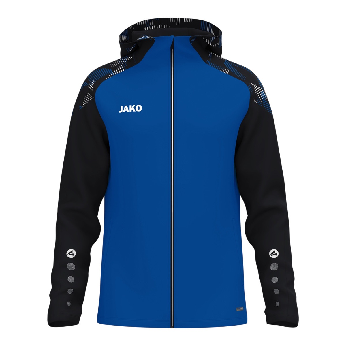 • wszywka na ramieniu w wzorze drukowanym nadaje kurtce dynamiczny wygląd, podczas gdy kropki JAKO na rękawie zapewniają typowy, sportowy styl marki.