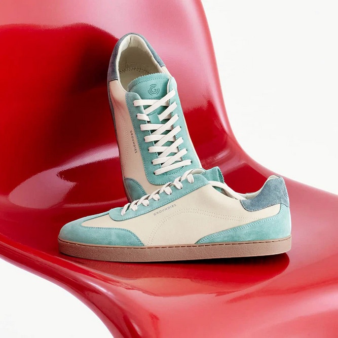 Sneaker Groundies Panama (Zero Drop, szeroka cholewka) beżowo-miętowy męski