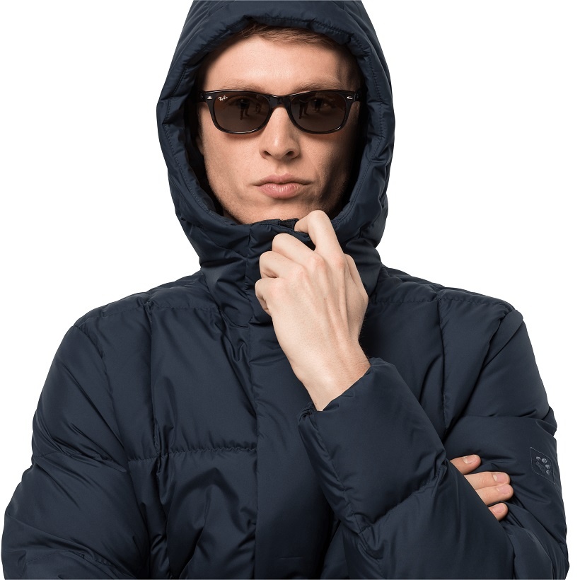• ciepłe wypełnienie z certyfikowanego puchu gęsiego oraz wysoki kołnierz chronią cię przed zimnem – aż do podbródka