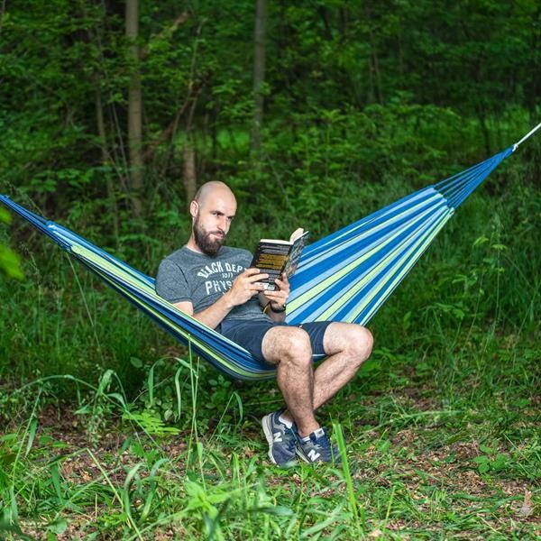 • hamak idealnie dopasowuje się do twojego ciała, a szerokość nawet 120 cm zapewnia każdemu wygodną pozycję