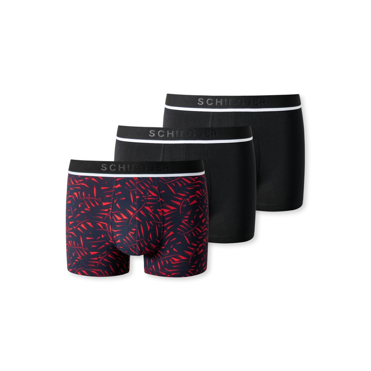Alarm cenowy dla Schiesser Bielizna Bokserki 95/5 Bawełna organiczna czarna/czerwona w wzory Mężczyźni - 3 sztuki