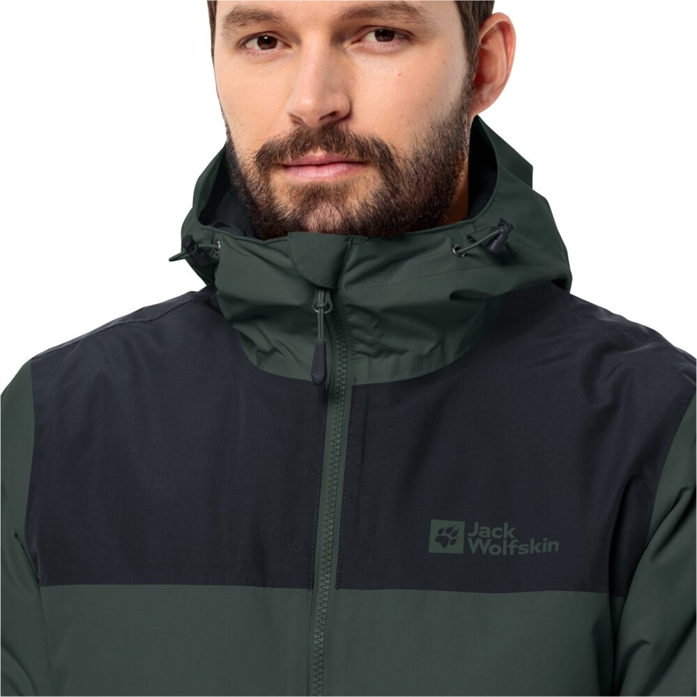 Jack Wolfskin Kurtka zimowa Jasper 2023 (bardzo wodoodporna i wiatroszczelna, oddychająca) oliwkowa/czarna męska