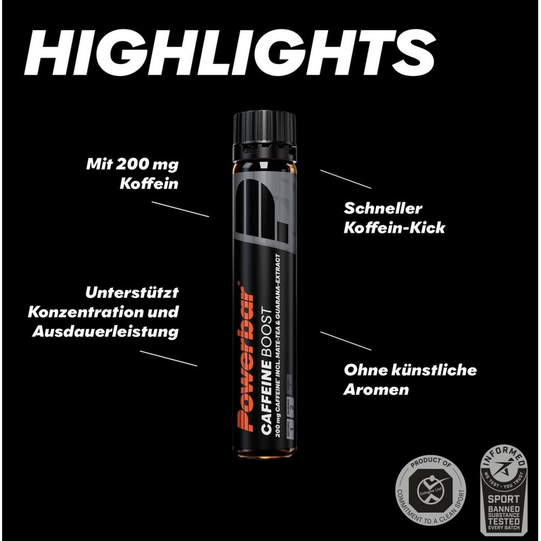 • zapewnia 200 mg kofeiny w praktycznej ampułce i łączy kofeinę z różnych źródeł, takich jak herbata mate i ekstrakty z guarany