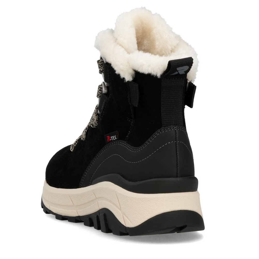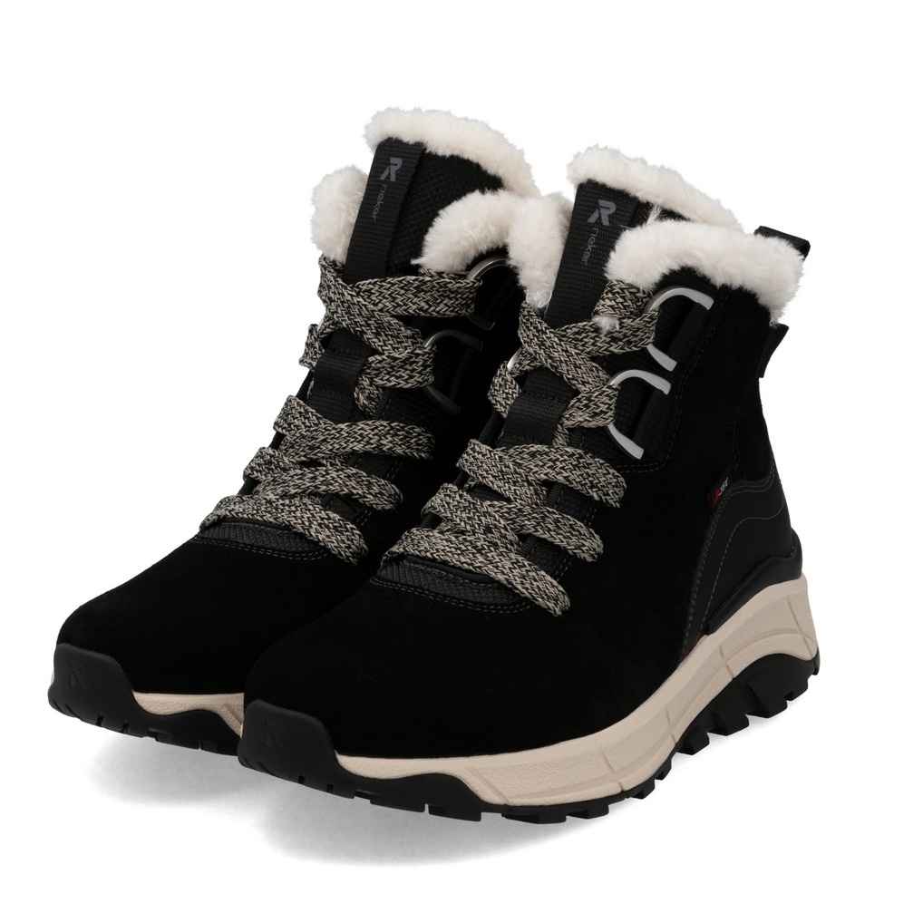 Rieker zimowe botki W0073-00 (sznurowane botki z ociepleniem, zamsz) czarne damskie