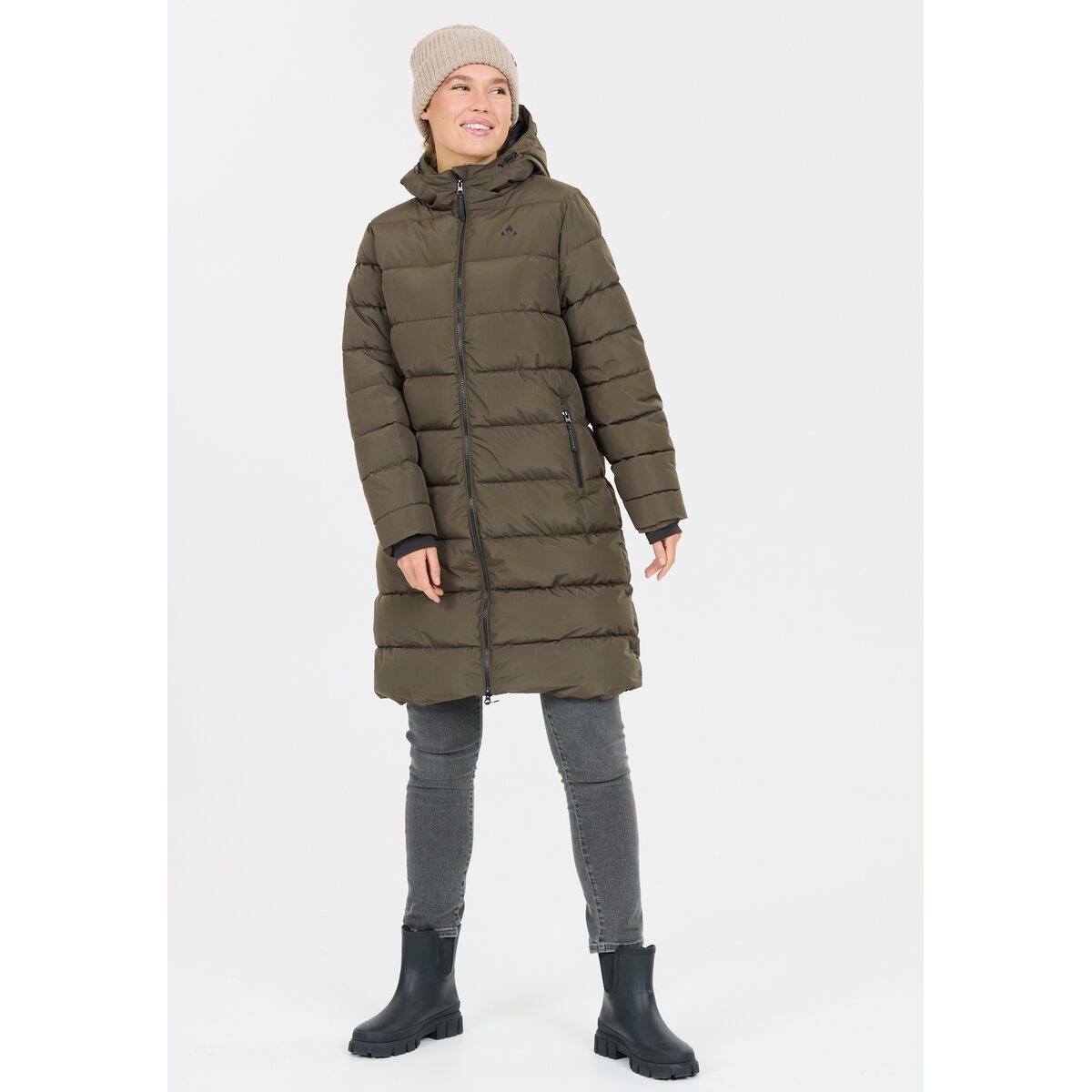 • wodoodporny i wiatroszczelny płaszcz puchowy "Amaret" od Whistler dla kobiet nie tylko utrzymuje ciepło, ale także wygląda bardzo modnie.