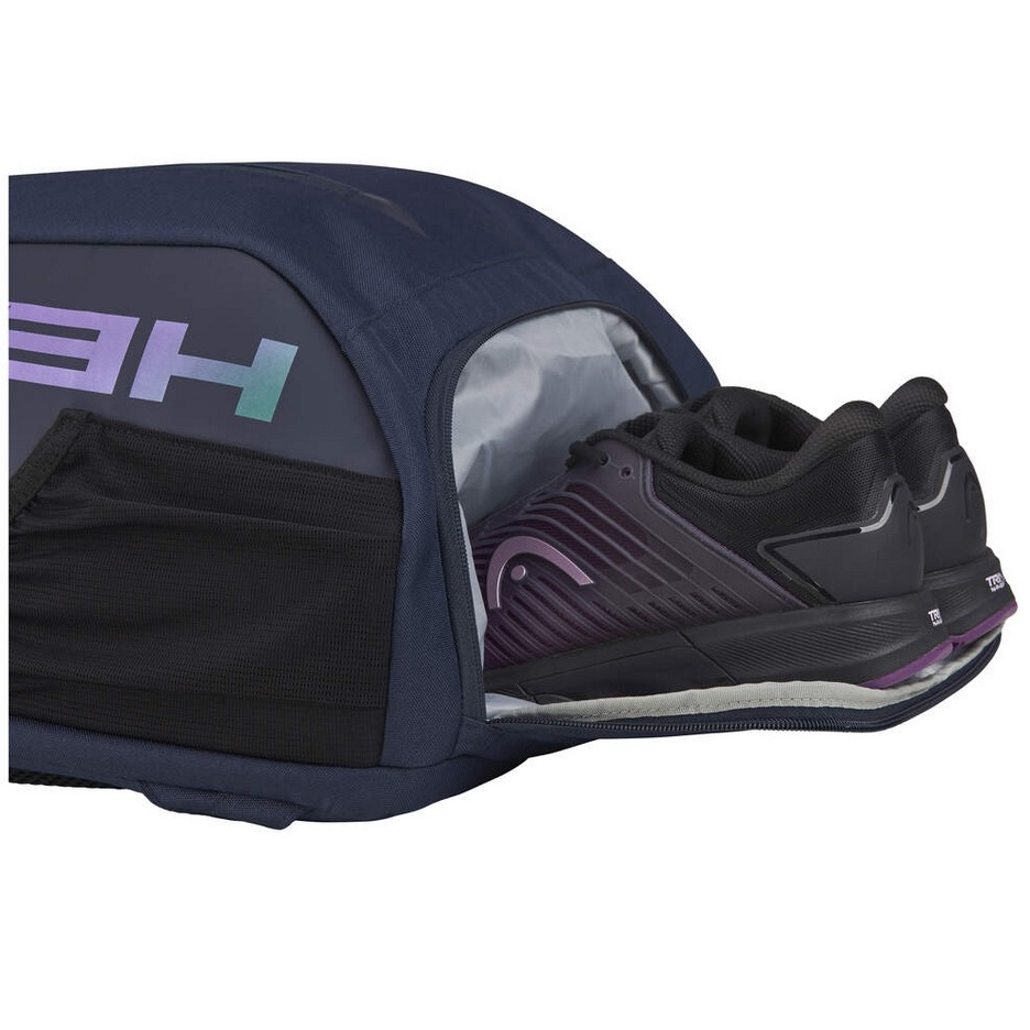 • nowa wyściółka zwiększa stabilność torby, która oprócz komory na rakietę dla jednej lub dwóch rakiet ma również główną komorę i zintegrowaną komorę na buty