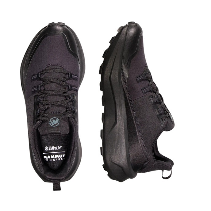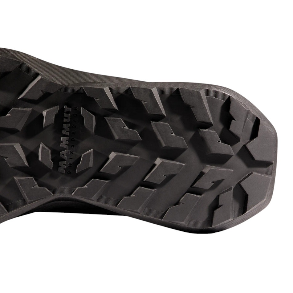 • podeszwa zewnętrzna Mammut Swiss-Design zapewnia niezawodną przyczepność na wszystkich twoich ulubionych szlakach, a konstrukcja podeszwy Rocker z powrotem energii pozwala na łagodniejsze stawianie kroków oraz mocniejsze odbicie.