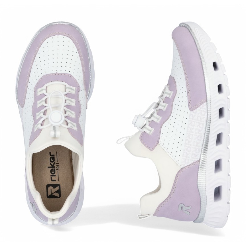 Sneakers Rieker (skóra syntetyczna) M6067-30 biało-fioletowe damskie