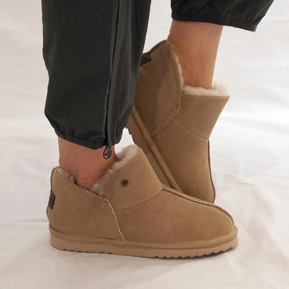 Alarm cenowy dla Warmbat Kapcie Pantofle Willow Suede z wełny merino w kolorze koniakowym dla kobiet (Kopie)