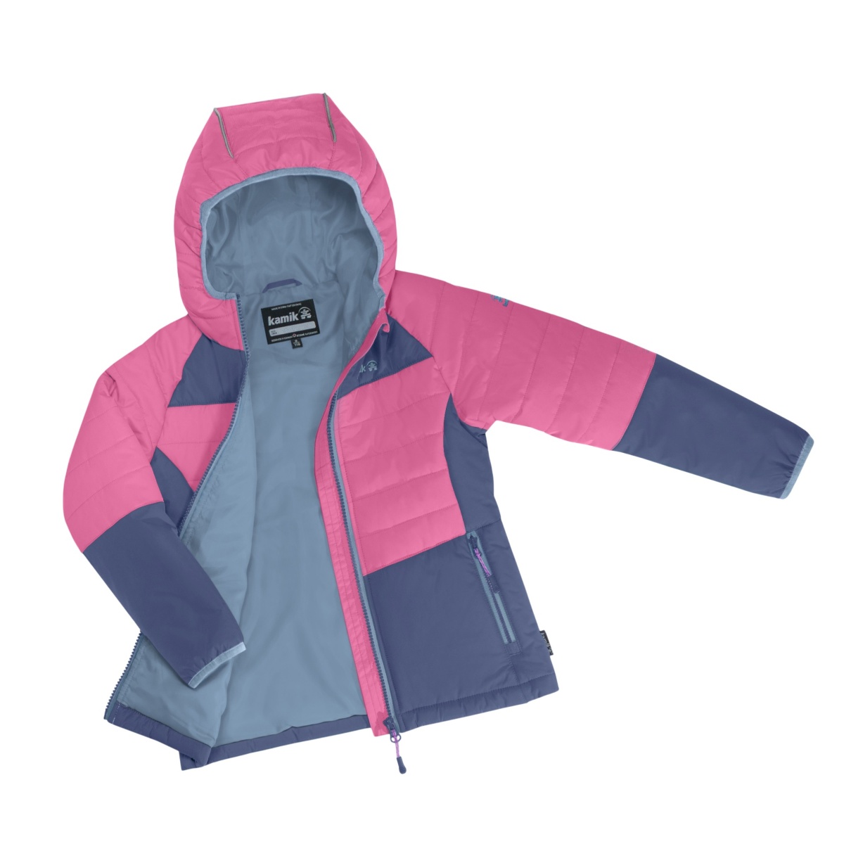 Kurtka Kamik całoroczna Celeste (wiatroszczelna, odblaskowa) różowa/niebieskoszara dziewczęca